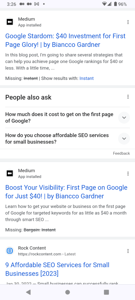 A lot of our own posts and posts from customers are ranking in less than 12 hours with our SEO optimization techniques. We’re so confident in our methods that we’re willing to prove it to you for just $40. That’s right, for a limited time only you can try our services and see quantifiable results on the first page of Google for under $50. Where else can you find that kind of value and quick ROI?